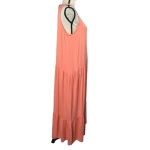 Alfani Medium Tiered Midi Dress Sleeveless Round Neck Keyhole Coral New