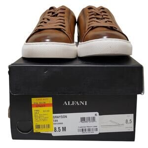 Alfani Men Grayson Low Top Lace Up Sneakers Size US 8.5M Tan Brown Faux Leather