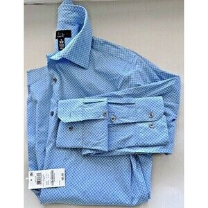 Alfani Men Puzzle-Print Dress Shirt Button Down Slim Fit Light Blue Sz 15-15 1/2