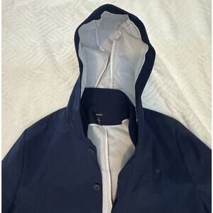 Alfani Mens Bonded Hooded Top Coat, Blue, Large