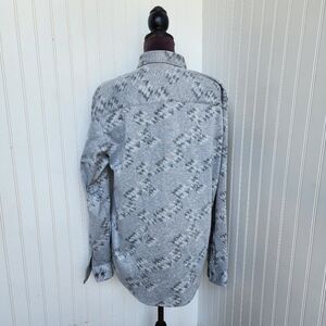 Alfani Men's Button Up Shirt Flannel Men's Gray Geo Print Soft Knit Stretch Sz L