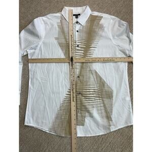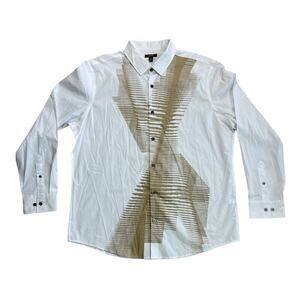 Alfani Mens Button Up Shirt White Abstract Line Print Long Sleeve Cotton XL New