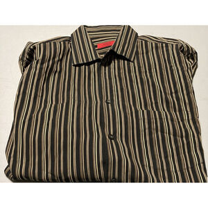 Alfani Mens Button-Up Shirt Black Striped Long Sleeve Point Collar Pocket L 16