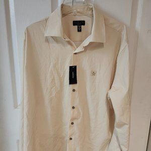 Alfani Mens Geo-Print Dress Shirt Tan 17-17 12 34-35