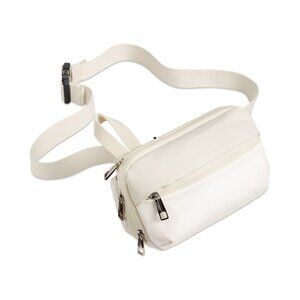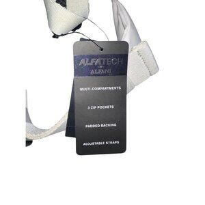 Alfani mixed-media crossbody bag helps you keep all of your essentials close when you're on-the-go, featuring three zip pockets and padded backing.