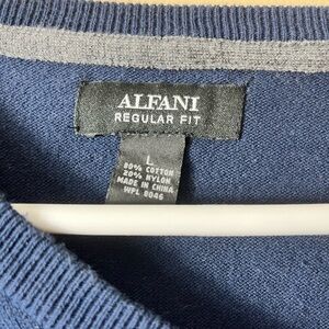 Alfani Men's Navy V-Neck Basic Knit Sweater Lightweight Large Academia Preppy