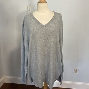 Alfani Mens Regular Fit Gray Heather V-neck Long Sleeve Sweater XXL