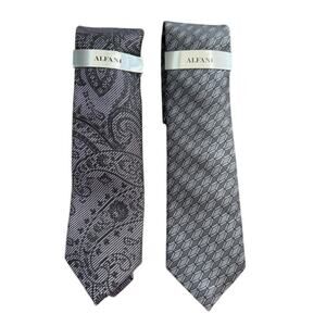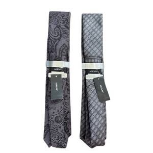 Add refined style to your wardrobe with this set of two brand new Alfani ties, perfect for both office wear and special occasions. Each tie features a sleek, modern print designed to elevate your look with subtle sophistication.