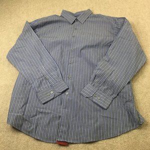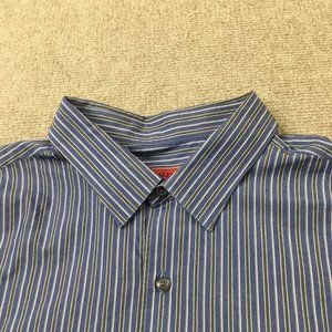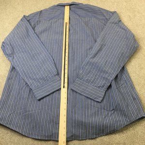 Alfani Mens Shirt Gray Blue 17 34/35 Button Down Striped Fitted #0367
