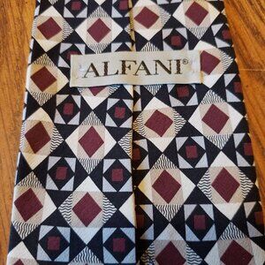 Alfani Mens Silk Black and Red Dimond Pattern Geometric Formal Necktie Tie