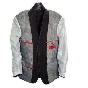 Alfani Mens Size 40L Blazer Sport Coat Slim Fit Velvet Micro Check Black Gray