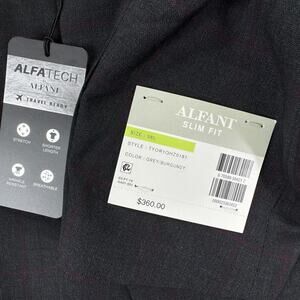 Alfani Mens Slim Fit Windowpane Check Suit Jacket Gray Burgundy 38L