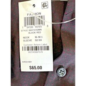 Alfani Mens Slim-Fit 4-Way Stretch Geo-Print Dress Shirt Black Red 16-16.5/32-33