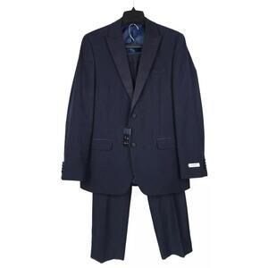 Alfani Men's Slim-Fit Stretch 2-Piece Tuxedo Diamond Grid Navy 42L 32x34 NWT