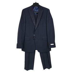 Alfani Men's Slim-Fit Stretch 2-Piece Tuxedo Diamond Grid Navy 42L 33x32 NWT