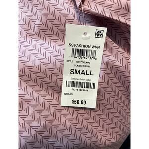This listing is for a new with tags Alfani Men's Small Short Sleeve Button-Up Cotton Shirt in a Pink Geometric Print. 100% Cotton, Machine Washable.