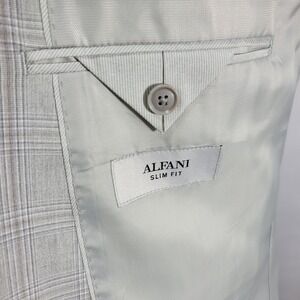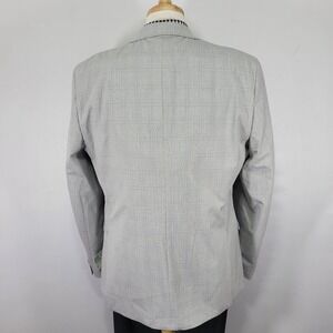 Alfani Men's Sport Coat Blazer Two Button Gray Plaid Poly Blend SLIM 46L NEW