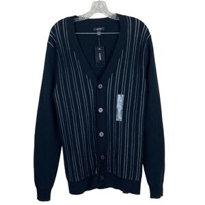 Alfani Men's Striped Cardigan Knit Sweater Deep Black Small