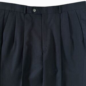 Alfani Men's Trouser Pant Sz 36 100% Wool Navy Pleated Dressy Workwear Business