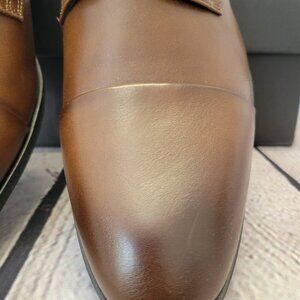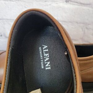 Give your professional look a modern makeover with the sleek faux leather and stylish textured detailing of these cap-toe dress shoes from Alfani.