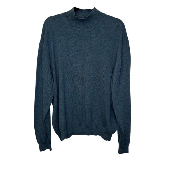 Alfani Mens XXL 100% Extra Fine Merino Wool Sweater Made in Italy Blue Mock Neck