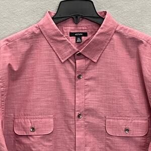 This listing is for a new with tags Alfani Men's XXL Button-Up Shirt in Smudge Cranberry. Long Sleeve, Two Chest Pockets w/Button, 100% Cotton, Machine Washable.