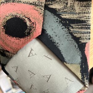 abstract pattern, vintage style, silk tie, geometric design, retro accessory, eclectic print, statement piece, artistic motif, classic neckwear, bold design