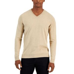 Alfani Men's Solid V-Neck Cotton Sweater - Twill Heather Small