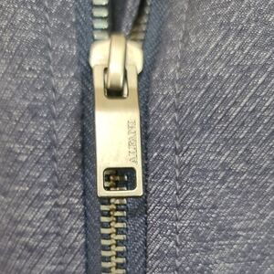 Chic Alfani jacket in midnight blue. Features a contrasting black collar and zipper.