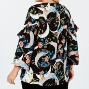 Alfani Multicolor Crescent Floral Blouse 3/4 Sleeves w/ Ruffles Size 3X
