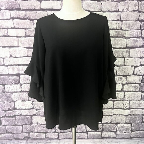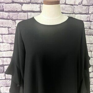 Alfani NWT Black 3/4 Ruffle Sleeve Blouse Size M