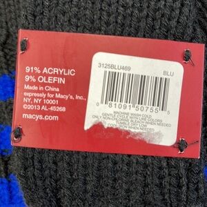 Alfani NWT Black With Blue Stripes Acrylic Winter Scarf