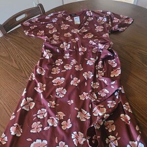 Alfani NWT ditzy wrap midi burgundy red floral flowy dress size Medium