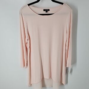 Alfani elegant light pink tunic top. Lightweight, crew neck, long sleeved, hi-low hemline. Perfect for any occasion, this top offers both style and comfort.