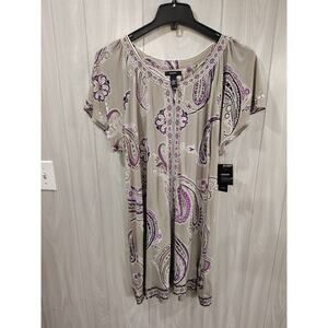 Alfani Paisley Sparkle Tunic Mini-dress XL Purple Tan NWT Boho Party Festival