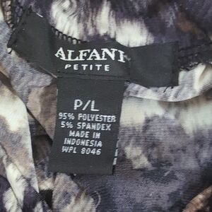 Alfani Patterned 3/4 sleeve Women's Top. Size LP. Excellent Pre-Owned Condition with no flaws. Colors are black, brown, cream, grey and purple.
