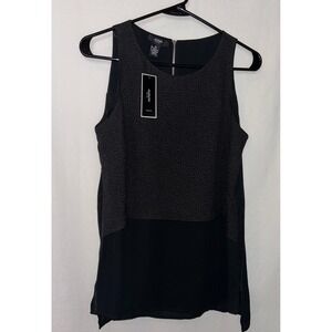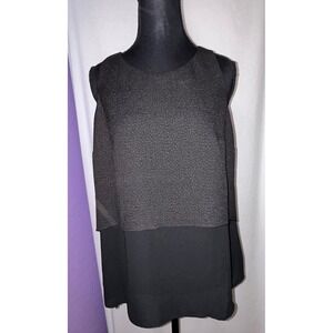 Alfani Petite Black Sleeveless Overlay Top Textured Blouse Size 6P Career