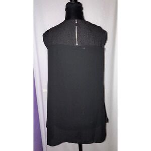 Sophisticated charm defines this black sleeveless top, a versatile piece that elevates any wardrobe. The design showcases a chic, layered effect with a textured overlay, lending depth and visual interest. A concealed zipper in the back ensures a smooth and seamless silhouette. Perfect for a professional setting or a smart-casual event, this top pairs effortlessly with tailored pants, skirts, or even layered under a blazer for added sophistication. Dress it up for a business meeting or down for a stylish brunch with friends.