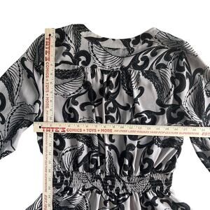Alfani Petite Blouse 10P Black Beige Print Peplum Waist 3/4 Sleeve