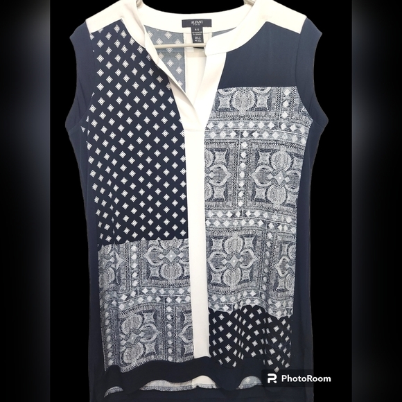 Beautiful shirt by Alfani with patchwork pattern. Size Petite small, does seem like it runs a little bigger, so I would say it could fit a TRUE medium. Great preloved condition. Measurements are approximate: