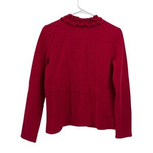 Alfani Petite Womens Red Ruffle Front Cardigan Sweater 100% Merino Wool Size P/S
