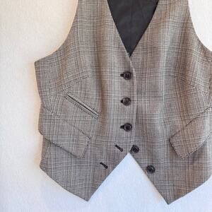 Alfani Plaid Gray Black Button Front Suit Vest Women’s Size 8 Tailored Career