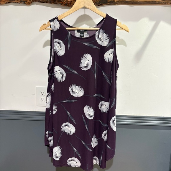 Alfani Plum and White Floral Sleeveless Blouse Plus Size