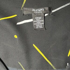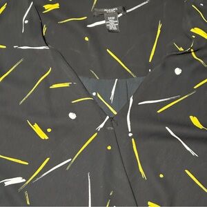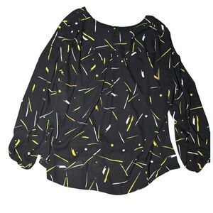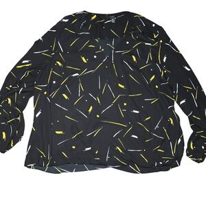 Alfani Plus 24W Black Yellow Dash Print V-Neck Blouse Balloon Sleeve