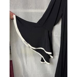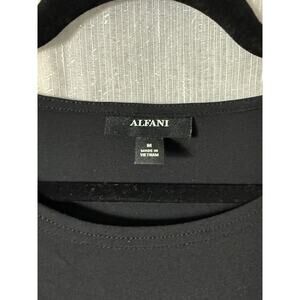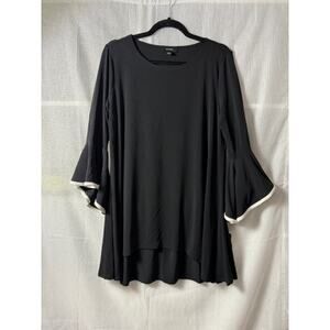 A long elegant flowy black blouse by Alfani featuring bell sleeves. It’s perfect for any occasion as it can be dressed up or worn with jeans. Note that this is a Plus Size brand of clothing.
