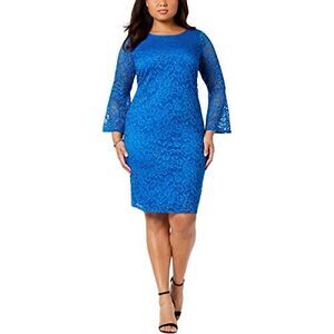 A curve-enhancing plus size sheath from Alfani gets a lovely new look thanks to delicate lace fabric. Flared bell sleeves add the right finishing touch. Hidden back zipper closure Knee length Crew neckline; sheath silhouette Sheer lace bell sleeves Nylon/spandex; lining: polyester Machine washable Imported