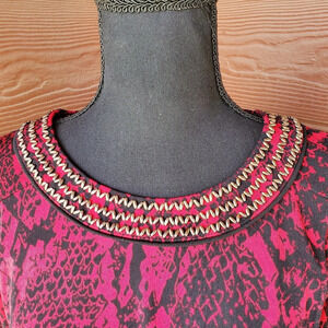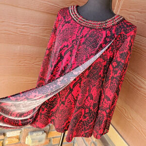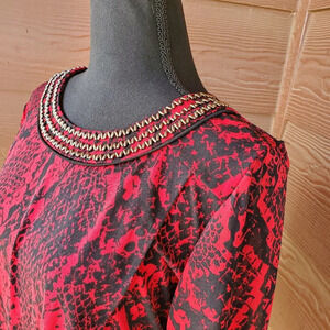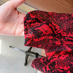 Alfani Red and Black Snakeskin Print Long Sleeve Blouse Size Medium