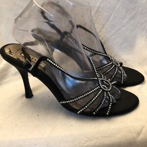 Here is a pair of Alfani Rhinestone Heels Size 8 the style name is Tory that does have an issue with scraps on the inside sole but you foot will be covering it is in good condition and very pretty