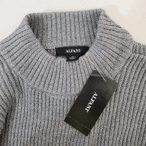 Alfani Ribbed Knit Sweater Womens Size M Gray Pewter Long Sleeve Mock Neck