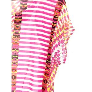 • Features vibrant pink stripes and an abstract pattern with attached white camisole